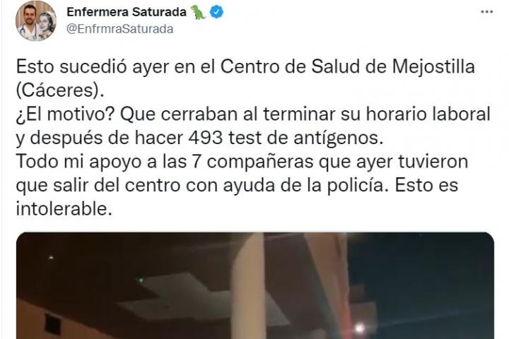 Según explica la cuenta de Twitter @enfrmrasaturada, estas trabajadoras “tuvieron que salir del centro con ayuda de la policía”, que estuvo tratando de controlar la situación. Junto a los agentes, también hubo voluntarios de DYA que se encargaron durante toda la tarde de gestionar la cola de personas que esperaban para realizarse la prueba, tal y como informó el medio Hoy.