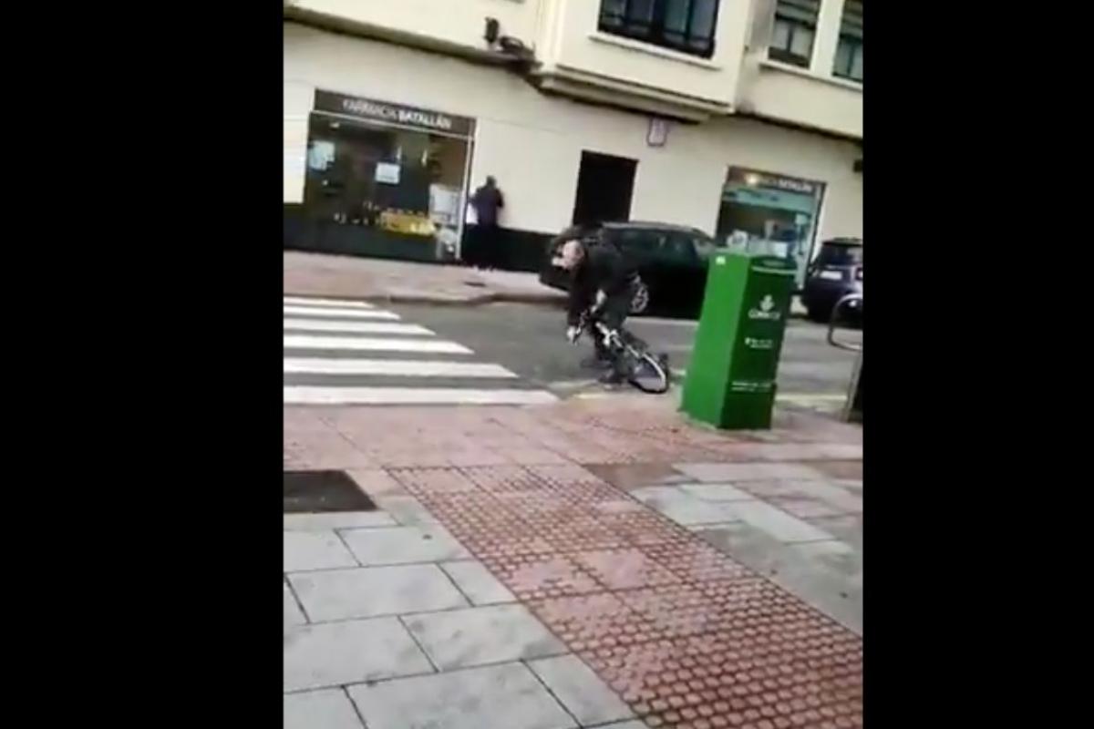 Al poco, una mujer cruza un paso de cebra y por poco sale volando como Mary Poppins. Consigue evitarlo mientras otra chica aparece por la izquierda de la imagen dirigiéndose sin remedio hacia un coche aparcado contra el que termina estampándose.