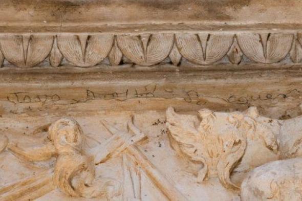 Un firma del poeta Gustavo Adolfo Bécquer realizada con grafito se ha localizado en la portada de la iglesia del Convento de San Clemente, en Toledo, durante las labores de limpieza y conservación que se han llevado a cabo.