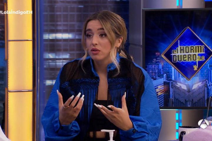 La cantante Lola Índigo fue a divertirse este miércoles a El Hormiguero, el programa que presenta Pablo Motos en Antena 3. La joven artista, que presentó sus dos últimas canciones, 4 besos y Mala cara, aprovechó la oportunidad para quejarse de las medidas del Gobierno dirigidas al sector musical.