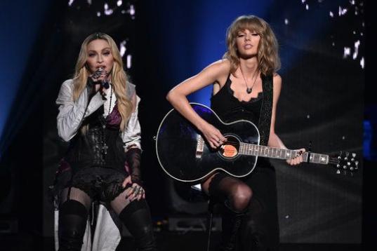 Cantando con Taylor Swift en marzo de 2015, en los iHeartRadio Music Awards.