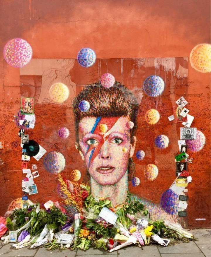 Pero uno de los lugares más emblemáticos es 23 Heddon Street, un callejón al oeste de Carnaby Street donde nació el alter ego de David Bowie, Ziggy Stardust, y que tras la muerte del cantante se ha convertido en un lugar de peregrinación: una placa conmemorativa y miles de flores y regalos recuerdan al música. Sus fans tampoco se pueden perder el mural de James Cochran ubicado en un lateral del centro comercial Morleys en Brixton.