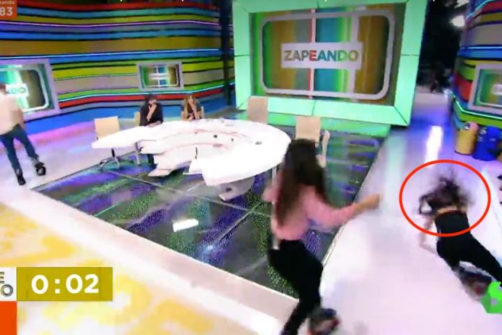 En ese momento, Castell ha corrido delante de Pedroche y se ha resbalado, cayendo al suelo de forma aparatosa. Dani Mateo se ha llevado las manos a la cabeza y ha llegado a decir que “está loca”. “Me he caído con mi propio hielo”, ha afirmado la colaboradora.