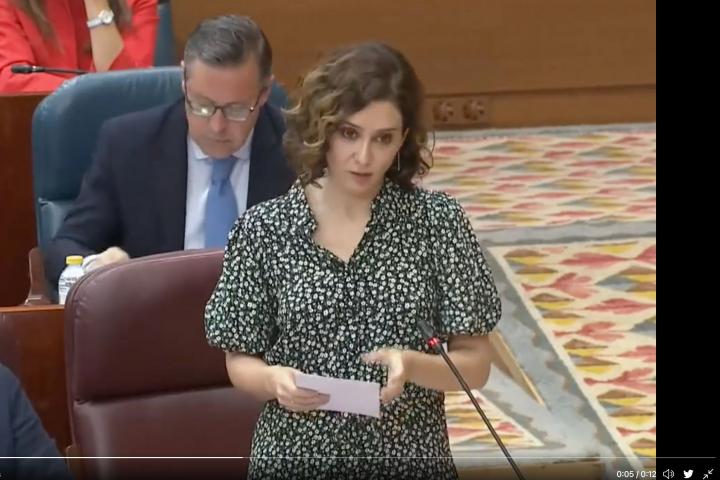 Los 12 segundos de Ayuso en la Asamblea que indignan a un diputado de Más Madrid