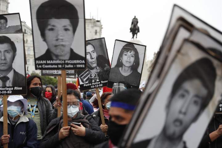 Del otro lado, están las víctimas y los familiares de víctimas del que puso nombre a este sistema, Alberto Fujimori, que en sus diez años de gobierno autoritario (1990-2000) ordenó matanzas y esterilizaciones forzadas a mujeres, y que todavía cumple condena por crímenes de lesa humanidad por las masacres de Barrios Altos (1991), en la que fueron asesinadas 15 personas, y La Cantuta (1992), en la que se asesinó a nueve alumnos y un profesor de universidad.