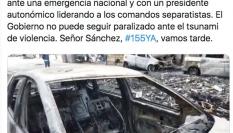 Un coche ardiendo en Barcelona.