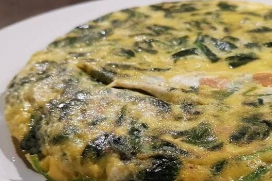 ▶️ Ingredientes: cinco huevos, 400 gramos espinacas frescas o congeladas,150 gramos de queso fresco o requesón, 100 gramos de salmón ahumado, 1-2 dientes de ajo, sal, aceite de oliva virgen y rodajas de merluza a...