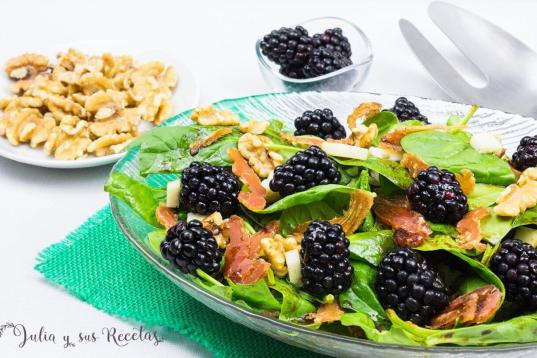 ▶️ Ingredientes: 150 gramos de espinacas frescas, 50 gramos de bacon en lonchas, 100 gramos de queso semicurado, 100 gramos de moras o arándanos, 50 gramos de nueces o pistachos y la vinagreta. ▶️ Encuentra aquí la re...