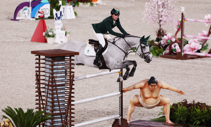 Como ocurre en todas las citas olímpicas, hay una disciplina que tiene una dificultad añadida para los deportistas: la hípica. A la maña y el buen hacer de los jinetes hay que sumarle la importancia de los caballos en cada una de las pruebas, y parece que este año en Tokio los equinos han encontrado un enemigo inesperado: unas figuras casi a tamaño real de luchadores de sumo.