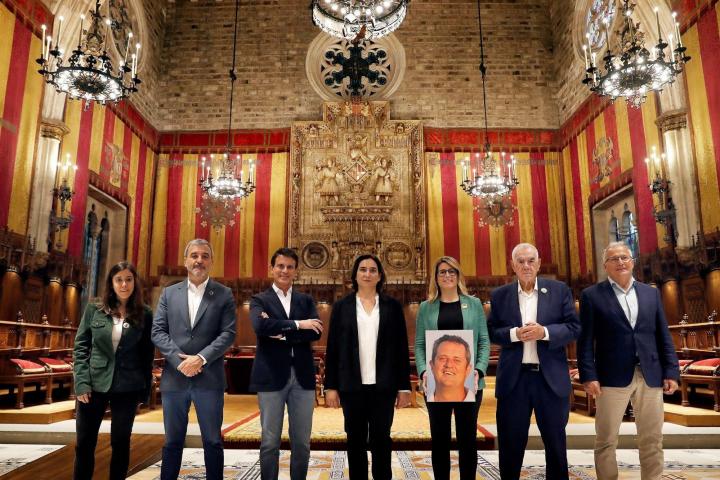 A primera hora de la mañana, la Agencia Efe ha reunido esta mañana a los siete principales candidatos a la alcaldía de Barcelona en el histórico Saló de Cent del Ayuntamiento, donde han posado para la tradicional fotografía que distribuirá hoy a sus abonados.
