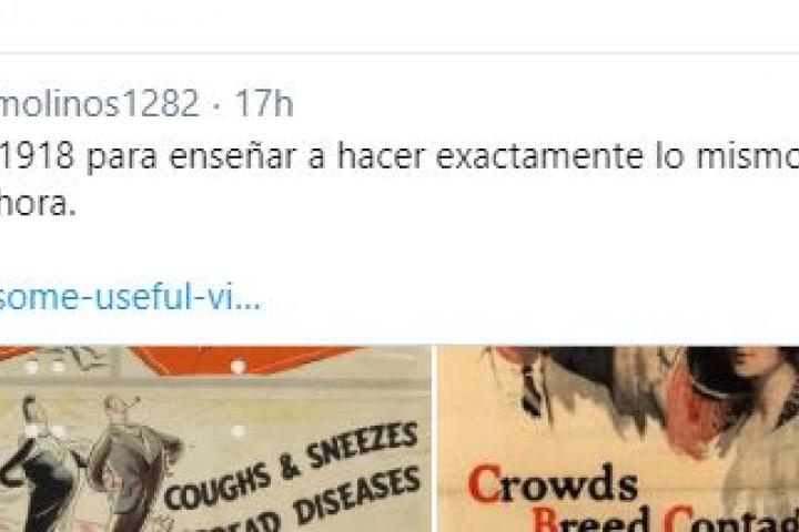 Carteles de 1918 para enseñar a hacer exactamente lo mismo que tenemos que hacer ahora. https://t.co/zt6PL80dRV pic.twitter.com/6JGgla3EJg