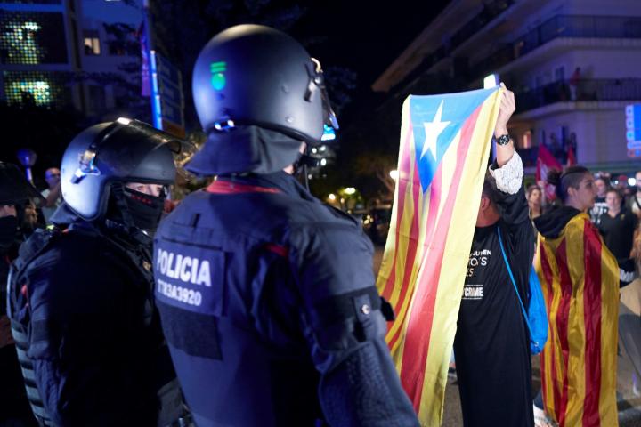 Miembros de los CDR organizan una manifestación bajo los lemas ''¡Vamos a echarlos!'' y ''¡Fuera las fuerzas de ocupación!''.EFE