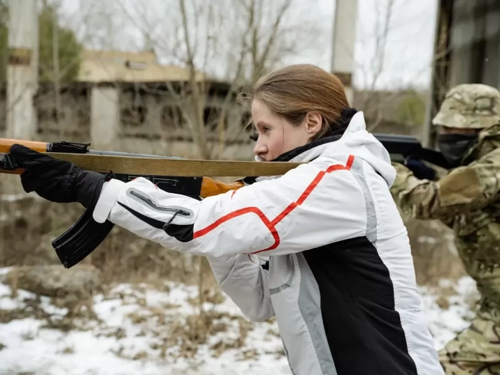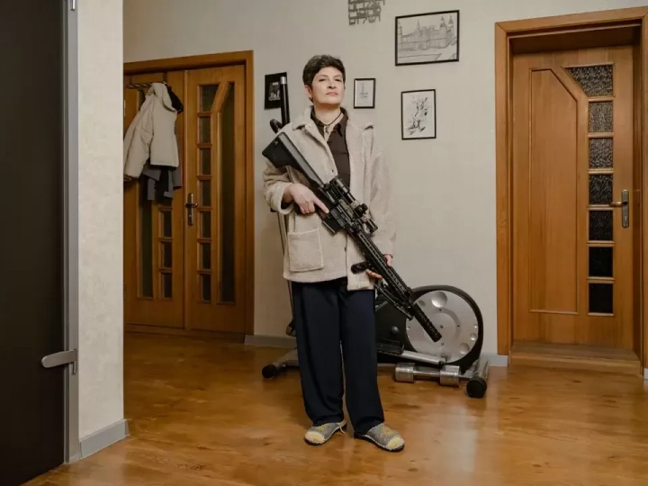 Maryana Zhaglo, nacida en Kiev hace 52 años, es analista de marketing y madre de tres hijos. Ella forma parte de los ucranianos que han comprado un arma recientemente. Concretamente, el rifle de fabricación ucraniana Zbroyar Z-15. Zhaglo explica que se ha alistado como reservista para defender la ciudad donde nació. “La defensa territorial para mí es defender mi ciudad, mi hogar. Mis motivaciones son mi familia, mi ciudad y mi país”.