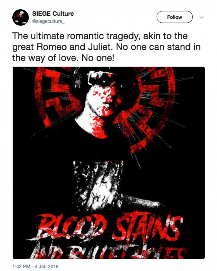 A principios de este mes, una web llamada SIEGE Culture, que parece estar asociada a Atomwaffen, empezó a elaborar piezas originales de la propaganda de Atomwaffen con fotos de la cara de Giampa.