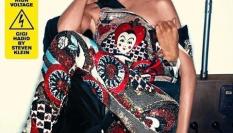 En la primera imagen, la modelo muestra un sofá en el que cada espacio está fabricado en un tono y tejido diferente, aunque el naranja es el color predominante en la estancia. Se trata de un modelo de Missoni, que la modelo ha combinado con cojines de la firma francesa Jean-Paul Gaultier.