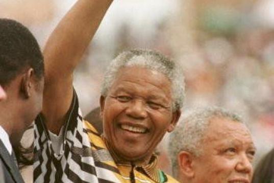 Mandela, que propugnaba la integración racial bajo el lema de la "nación arco iris", vistió la camiseta de la selección nacional y se convirtió en talismán de su equipo, que ganó un campeonato del que había sido expulsado antes por la vigencia del "apartheid".