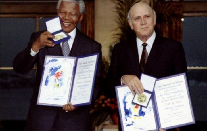 Aunque De Klerk y Mandela ya habían recibido elogios de la comunidad internacional y galardones por sus negociaciones para una transición hacia una Sudáfrica democrática, el más importante llegó en 1993: el Premio Nobel de la Paz.