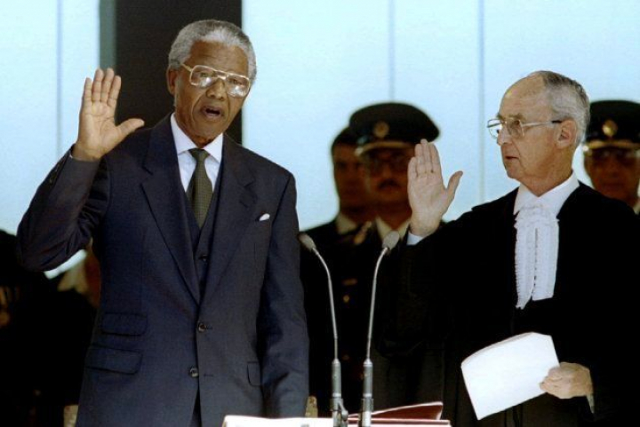 Sudáfrica celebró en abril de 1994 sus primeras elecciones democráticas multirraciales, en las que, por primera vez, la mayoría negra pudo hacer oír su voz a través de las urnas, lo que supuso una victoria del CNA, que obtuvo el 62,65% de los votos.
