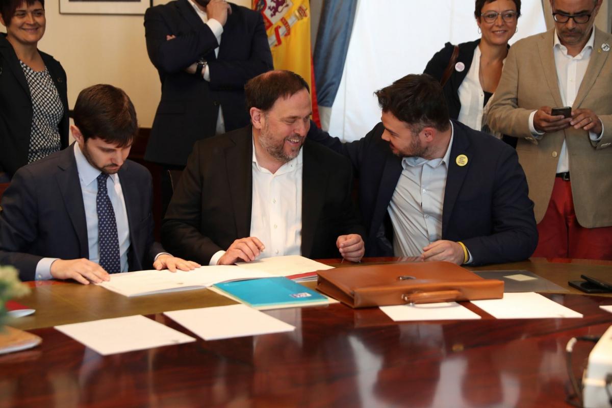 En su mensaje, recogido por Europa Press, Junqueras aparece sonriendo junto a Rufián y se muestra orgulloso del respaldo obtenido en las elecciones del pasado 28 de abril y agradece el apoyo de sus compañeros de ERC.