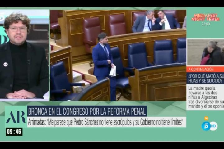 Los tertulianos han analizado la bronca de este jueves en el Congreso a cuenta de la reforma penal y en medio de la amenaza del Constitucional de paralizar la votación de la reforma de la sedición, que incluía de facto la modificación ‘exprés’ del Código Penal.