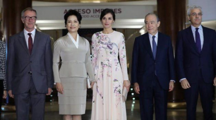 El bordado del vestido de la reina no ha sido el único gesto a la primera dama china: la visita al Teatro Real de Madrid tampoco ha sido fruto de la casualidad. Peng Liyuan es una conocida soprano en su país, por lo que la visita al auditorio lírico ha sido todo un homenaje a la profesión de su invitada.