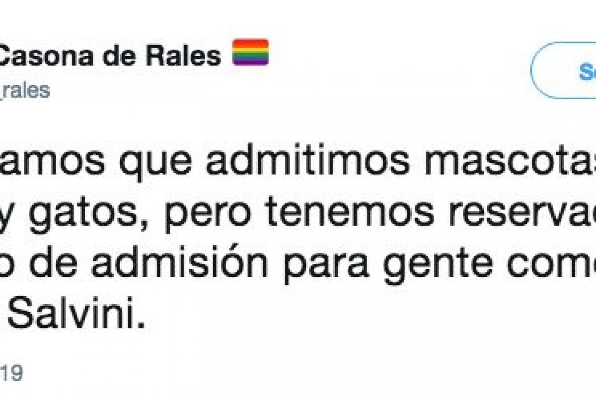“Recordamos que admitimos mascotas como perros y gatos, pero tenemos reservado el derecho de admisión para gente como Matteo Salvini”, escribieron primero, para después mandarlo mar a dentro en el popular yate para pobres.