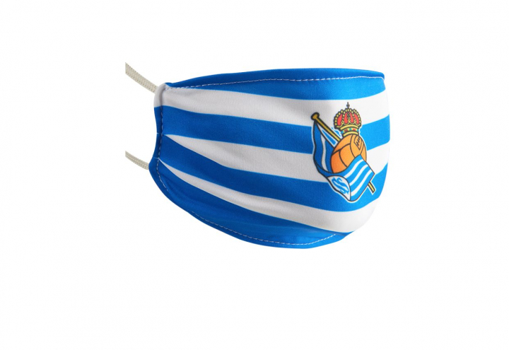 La Real Sociedad ha sido otro de los primeros en subirse al carro y sacar a la venta mascarillas con los colores de su equipación. Se venden en la web y avisan de que no son EPI. Hay tres modelos distintos —dos infantiles y uno para adultos—. Son reutilizables y cuestan 5 euros cada uno.
