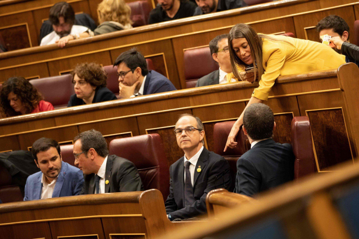 Su condición, al igual que la de el resto de políticos que han salido de prisión para acudir al Congreso, era excepcional, y a pesar de que Junqueras ha sido uno de los más fotografiados, también de los más discretos. De riguroso negro, sin lazos, ni chapas.