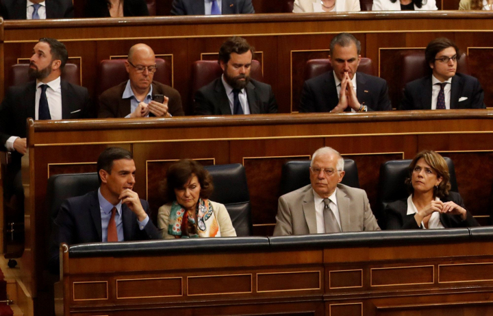 Los diputados de Vox se las prometían muy felices cuando llegaron a primera hora de la mañana dispuestos a ocupar la fila de detrás del Presidente Sánchez para colarse en todas las fotos. Lo consiguieron, pero se les escapó un detalle, o más bien una persona. El diputado socialista José Zaragoza se coló entre Abascal y Espinosa de los Monteros. Pa’ mala yo, que dirían Aitana y Ana Guerra.