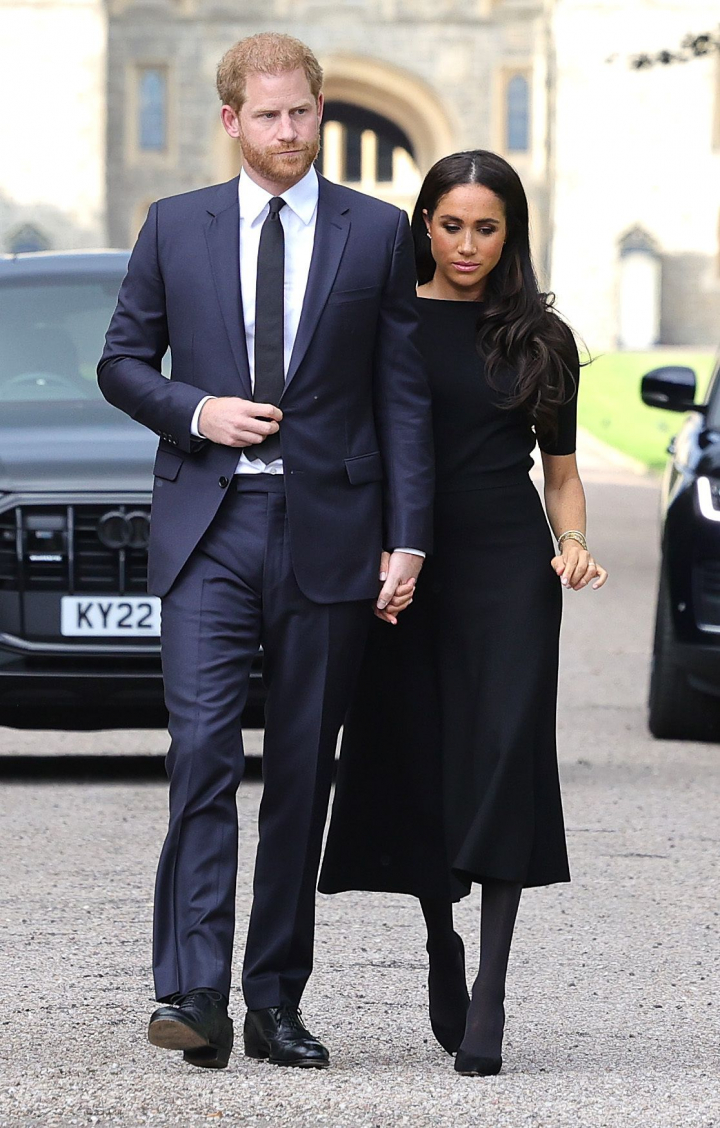 En medio del dolor por el fallecimiento de su abuela, los príncipes Guillermo y Harry escenificaron el sábado la imagen de la reconciliación en Windsor, saludando a las personas que se habían desplazado hasta el castillo y viendo los recuerdos florales con sus respectivas mujeres, Kate Middleton y Meghan Markle.