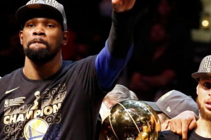 Junto a Curry, el alero Kevin Durant aportó un triple-doble de 20 puntos, 12 rebotes y 10 asistencias y fue nombrado MVP de las Finales.