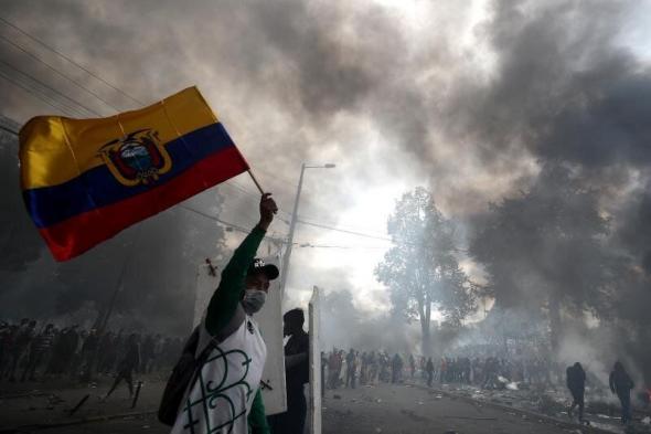 Los alrededores al parque de El Arbolito y la Casa de la Cultura Ecuatoriana, tomada por miles de indígenas como su cuartel en estas protestas, fueron escenario de una gran batalla campal con barricadas, fogatas y bombas lacrimógenas que lo dejaron todo lleno de cortinas de humo.