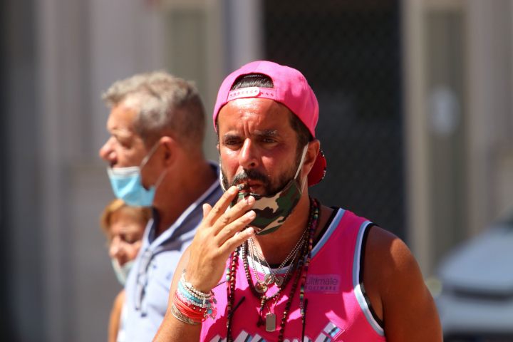 En el paisaje postcoronavirus es posible ver fumadores que llevan la mascarilla descolocada mientras van dando caladas a sus cigarrillos. La ley lo ampara. Para muchos, que los fumadores puedan seguir exhalando humo en terrazas y otras zonas transitadas resulta problemático y contradictorio respecto a las medidas de seguridad adoptadas para evitar posibles contagios por coronavirus. Sanidad ha establecido que se puede fumar siempre y cuando se respete la distancia de seguridad mínima de dos metros. Sin embargo, algunos fumadores se aprovechan de esta ‘bula’ para fumar mientras caminan, incumpliendo la norma por unos segundos cada vez que pasan cerca de otro viandante.