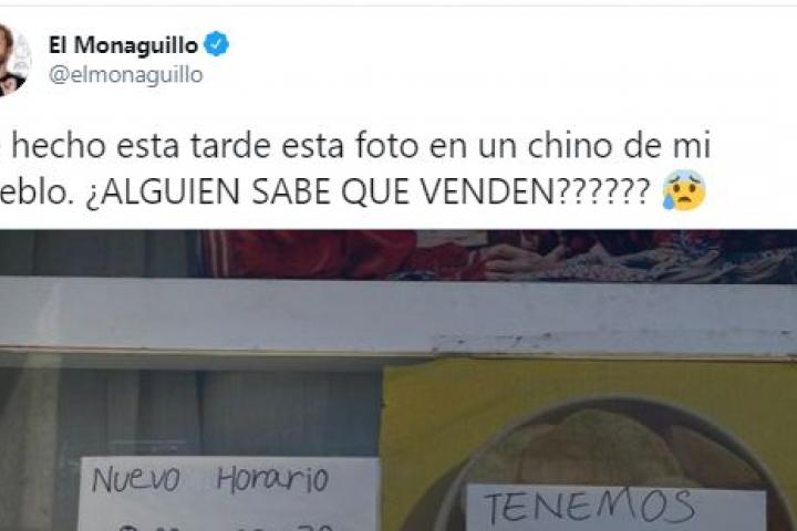 “He hecho esta tarde esta foto en un chino de mi pueblo. ¿ALGUIEN SABE QUE VENDEN??????”, ha escrito Fernández.