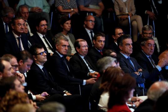 Al acto han acudido también el presidente del Real Madrid y del grupo ACS Florentino Pérez; el de Iberdrola, José Ignacio Sánchez Galán; el de Telefónica, José María Álvarez Pallete; el de Acciona, José Manuel Entrecanales; el consejero delegado de la Caixa, Guillermo Gortazar, el presidente de Iberia, Luis Gallego, y el presidente ejecutivo de Indra, Fernando Abril-Martorell.