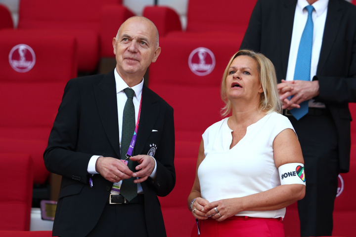 Pero no solo ha protestado Alemania en el terreno de juego, también lo ha hecho en el palco. Ahí se ha podido ver a la ministra federal del Interior y para la Patria de Alemania, Nancy Faeser, con un brazalete blanco y el lema One Love. Junto a ella estaba el presidente de la Asociación Alemana, Bernd Neuendorf.