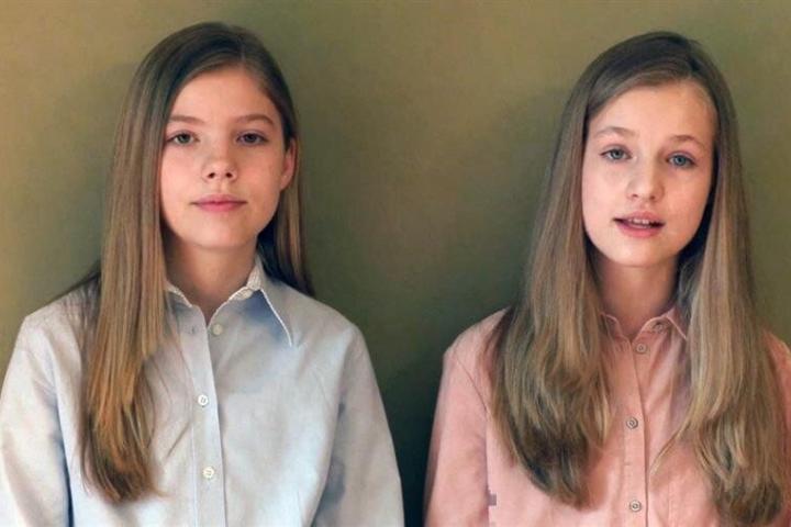 La infanta Sofía y la princesa Leonor, durante el mensaje del 23 de abril de 2020.EFE