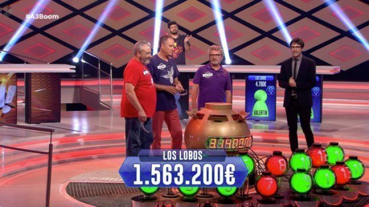 No hay precedentes en televisión. Antena 3 adelantará parte de su premio a Los Lobos, el veterano equipo de concursantes de Boom. José, Valentín, Manu y Erundino, que este jueves suman su programa número 307, llevan acumulados hasta la fecha 1.563.200 euros y optan a un bote total que supera los tres millones de euros.