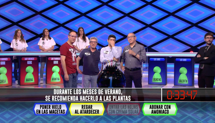 Y las respuestas: “Poner hielo en las macetas”, “regar al atardecer”, “untar las hojas con crema solar” y “abonar con amoníaco”.