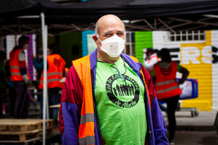 Además de electricista y montañero, Rogelio es el presidente de la Red de Apoyo Mutuo de Aluche (RAMA), hermana pequeña de la Asociación de Vecinos de Aluche (AVA), y encargada de proporcionar alimentos a 700 familias del barrio desde hace un año, cuando comenzó la pandemia.