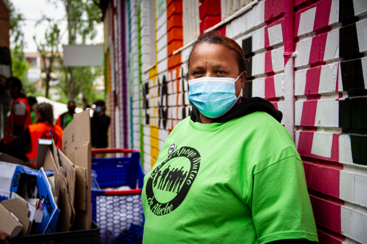 La mujer vive con su marido y su hija, y ninguno de ellos trabaja. Ella perdió su empleo a raíz de la pandemia, y al verse desocupada empezó a colaborar con la asociación. A la vista de que la situación en su casa se iba recrudeciendo por momentos, la mujer se inscribió también como receptora de alimentos. “Nunca antes había tenido que ir a pedir comida. Es la primera vez que lo hago, y gracias a esto estamos subsistiendo”, dice. Luisa asegura que en todo este tiempo no ha recibido ninguna ayuda: “Si no fuera por la asociación, no sé qué sería de mi vida ahora mismo”.