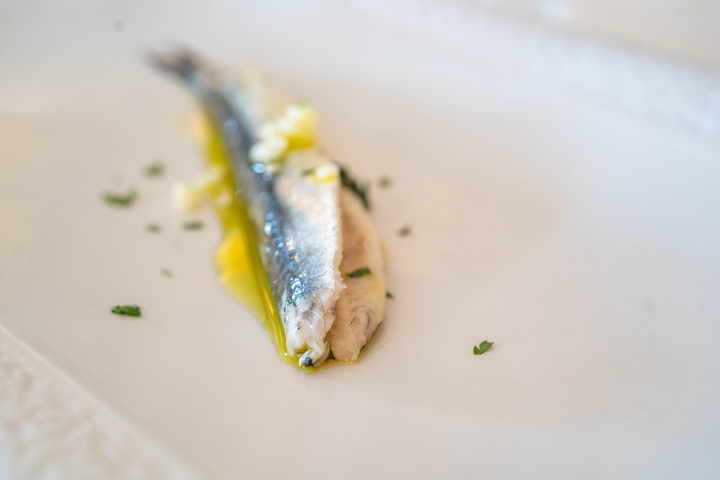 Todo empieza con un boquerón, que es poesía, sencillez y brillantez. Tras esto llega un plato de moluscos y el desfile de marisco, gamba roja de Palamós, langostino de Isla Cristina o cigala de Fuengirola. La evolución de los Marinos nos la muestran este año con una brasa japonesa que traen a la mesa para que podamos asar a nuestro gusto el sashimi de ventresca de atún y caviar, vuelta y vuelta como máximo para disfrutar de la grasa carne del túnido con el preciado yodado del caviar. Sigue con un plato casi de autor, un mar y montaña con un guiso de manitas, espardeñas y caviar, delicioso. Este festival termina con dos chipirones gallegos de ría, lorito frito y salmonete a la plancha, casi nada, maravilla y fantasía.