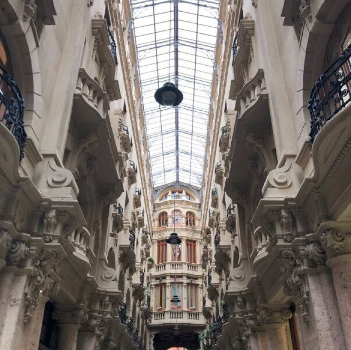 - Descripción: diseñada en 1925, esta histórica galería es una de las tres modernistas en España, que sigue la tendencia de Francia. Se sitúa entre las calles Mayor y Tinte, y en ella podrás contemplar sus columnas renacentistas y una cubierta en estructura de hierro.