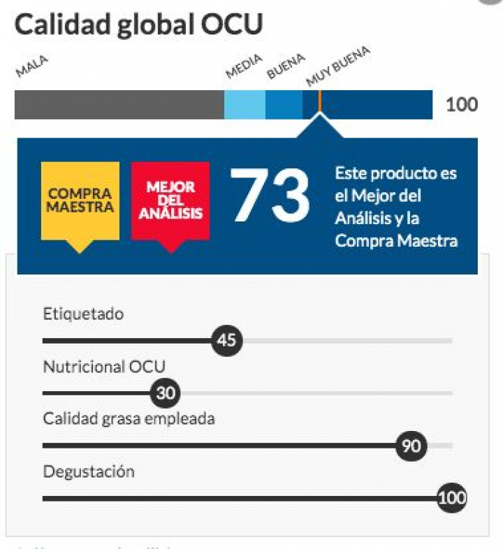 Asimismo, ha logrado una buena valoración en el análisis del tipo de grasa, ya que el producto está elaborado con mantequilla y nata. Sin embargo, se ha quedado un poco flojo en el etiquetado y la calidad nutricional.