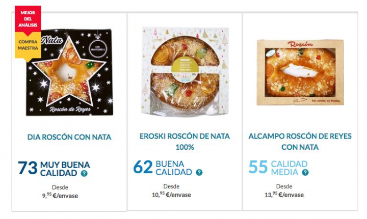 Aquí puedes ver los nueve roscones analizados por la OCU, de mejor a peor puntuación:
