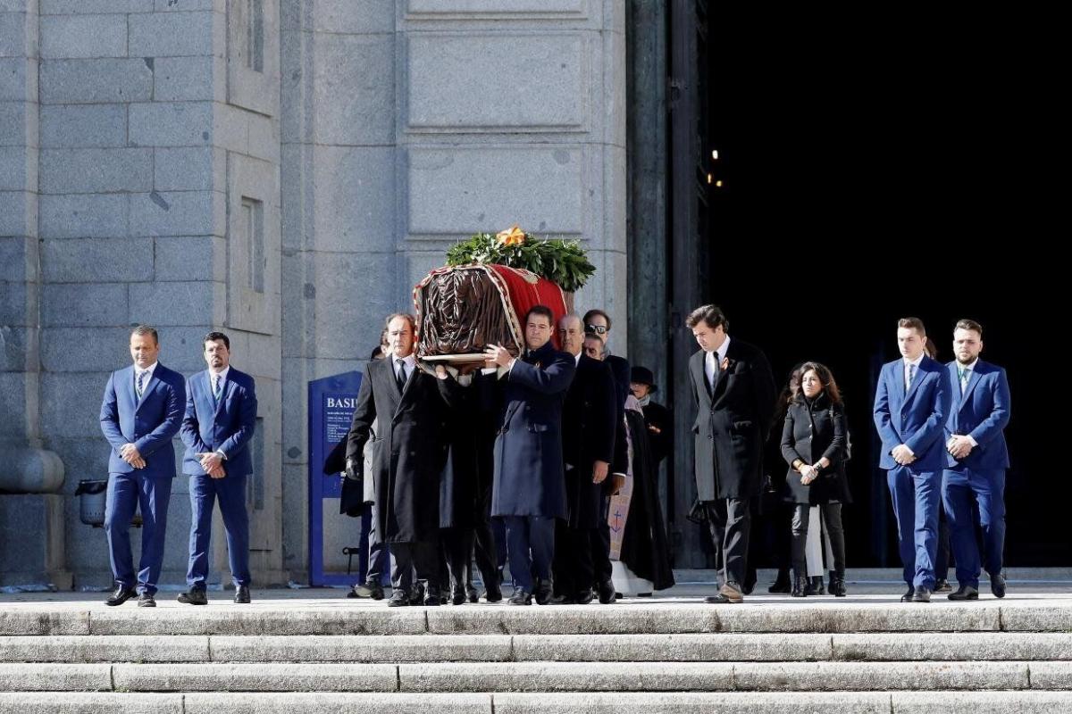 Salida del ataúd de Franco a hombros de sus familiares en el Valle de los Caídos.
