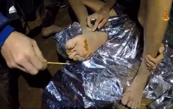 El grupo estaba concentrado en un saliente situado lejos, en los meandros de la cueva, situada en la frontera con Birmania y Laos, donde se quedaron atrapados el pasado sábado por la subida de las aguas.