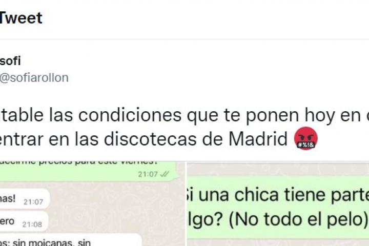 En ocasiones, muchas discotecas, salas o bares tienen estipuladas sus propias normas o códigos de vestimenta, pero hay veces que estos códigos son demasiado estrictos hasta el punto de tener que pasar un “control” con uno de los encargados del local para poder ir en la fecha indicada. Esto es lo que le ha ocurrido en una discoteca de Madrid a Sofía, una usuaria de Twitter.