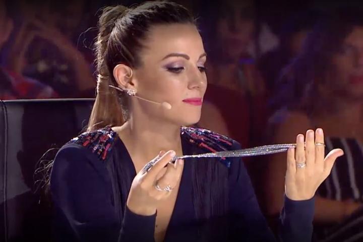 El programa Got Talent regresó este lunes a Telecinco con nueva temporada y, para la ocasión, Edurne lució unos pendientes ‘Doble daga’ de la firma Gold&Roses.