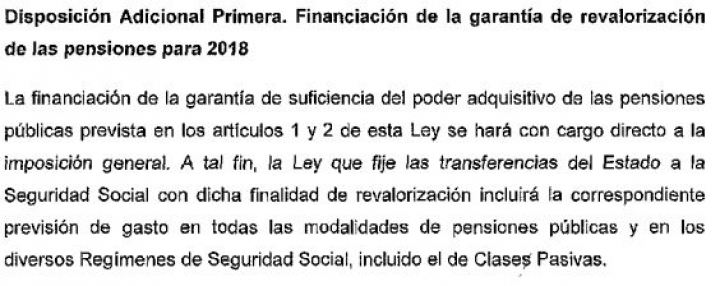 La iniciativa del PSOE incluía una garantía para que el incremento de las cotizaciones basada en el IPC debía de asegurarse con impuestos. "La revalorización de las pensiones para 2018 debe financiarse adicionalmente con una aportación a la Seguridad Social desde los impuestos", señalaba el texto.